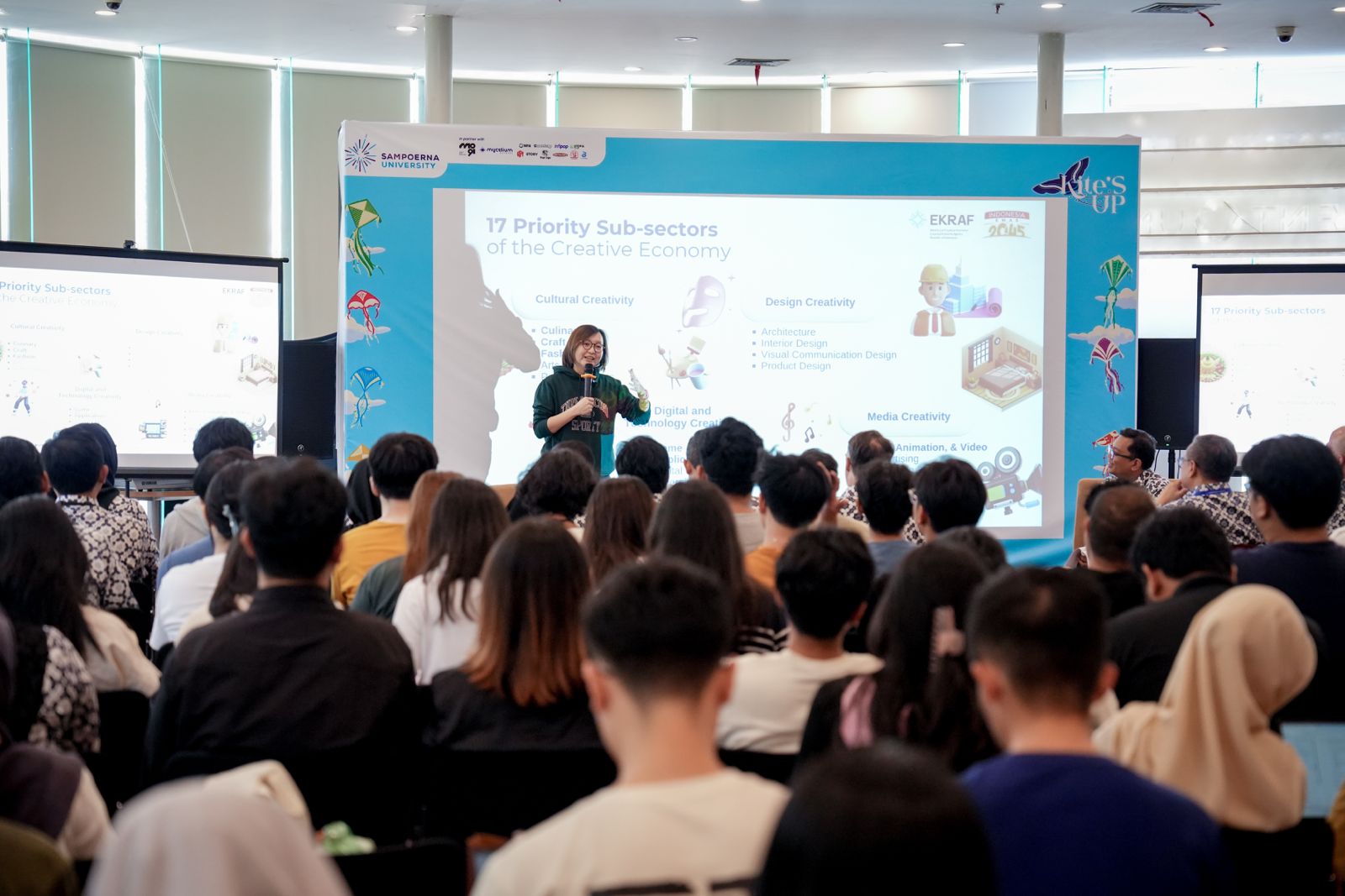 "Ini adalah momen untuk merayakan ekonomi kreatif agar mendorong pertumbuhan dan perkembangan ekonomi kreatif secara berkelanjutan untuk menuju Indonesia Emas 2045," tegasnya.