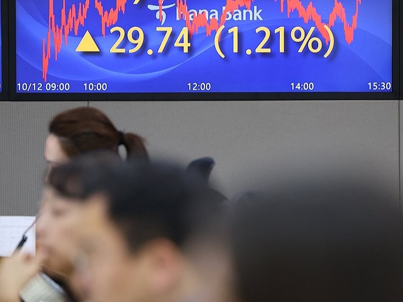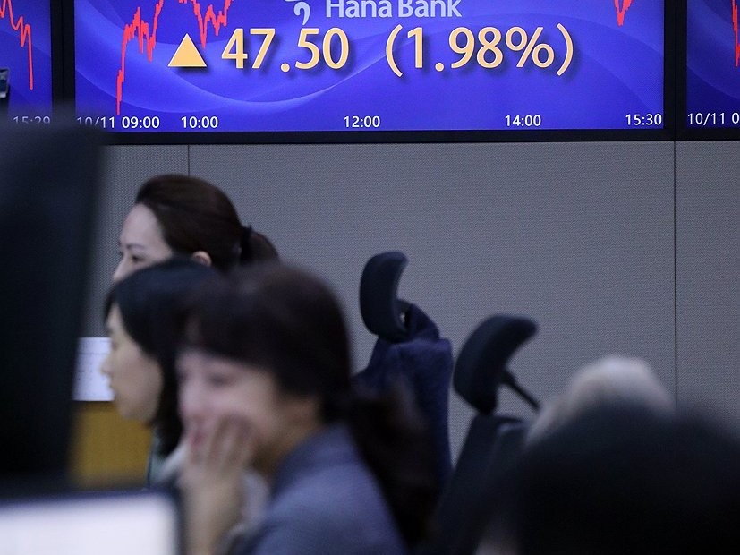 Indeks Kospi di Bursa Efek Korea, Seou, Korea Selatan,...