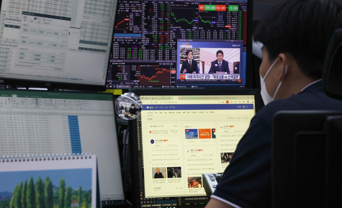 Indeks Kospi di Bursa Efek Korea, Seoul, Korea Selatan,...