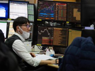 Indeks Kospi di Bursa Efek Korea, Seoul, Korea Selatan,...