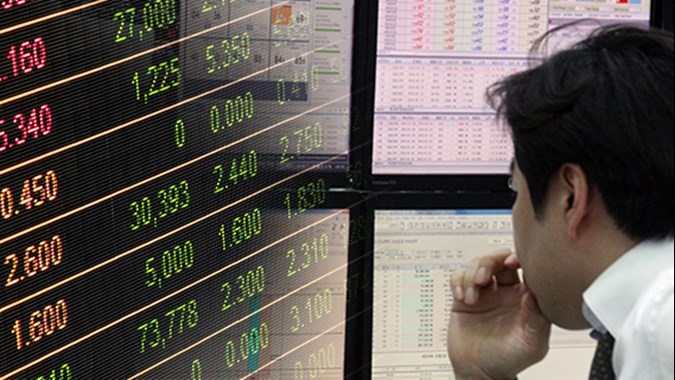 Indeks Kospi di Bursa Efek Korea, Seoul, Korea Selatan,...