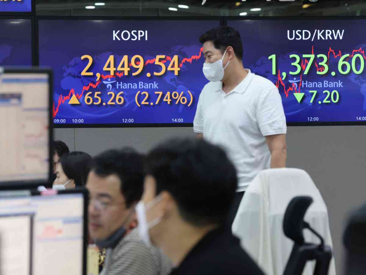 Indeks Kospi di Bursa Efek Korea, Seoul, Korea Selatan,...