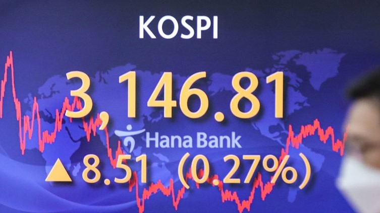 Indeks Kospi di Bursa Efek Korea, Seoul, Korea Selatan,...