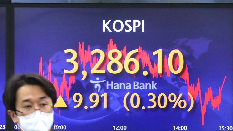 Indeks Kospi di Bursa Efek Korea, Seoul, Korea Selatan,...