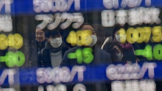 Indeks Nikkei 225 di Bursa Efek Tokyo, Jepang, terjun...