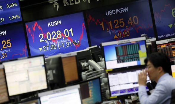 Indeks Kospi di Bursa Efek Korea, Seoul, Korea Selatan,...