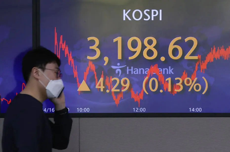 Indeks Kospi di Bursa Efek Korea, Seoul, Korea Selatan,...