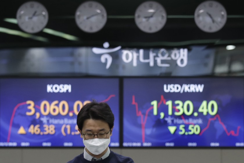 Indeks Kospi melonjak 40,69 poin, atau sekitar 1,35...