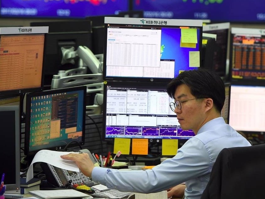 Indeks Kospi di Bursa Efek Korea, Seoul, Korea Selatan,...