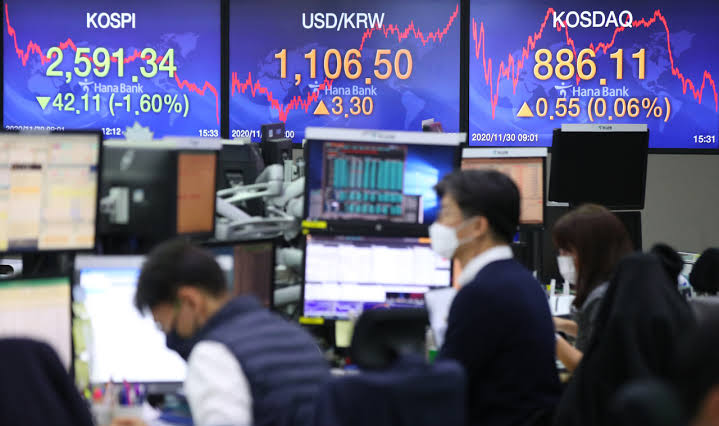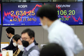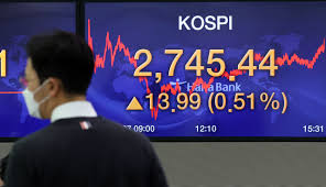 Indeks Kospi di Bursa Efek Korea, Seoul, Korea Selatan,...