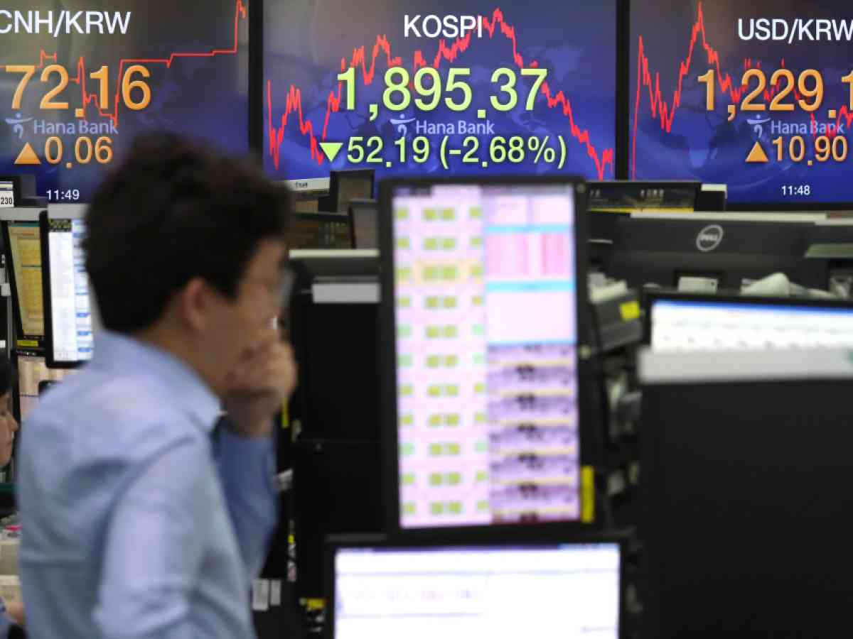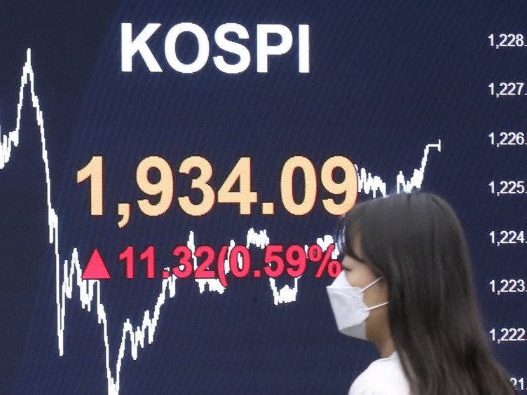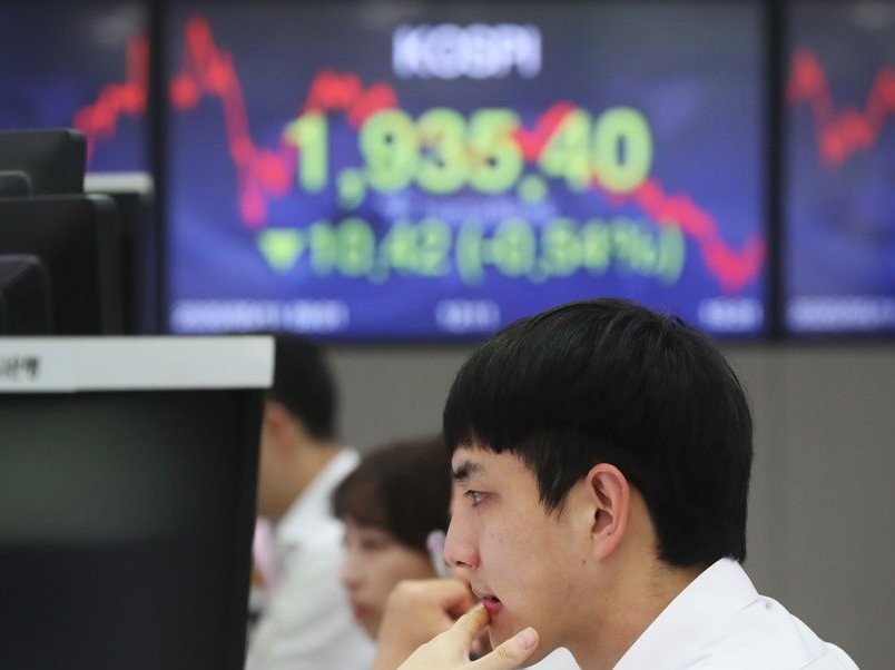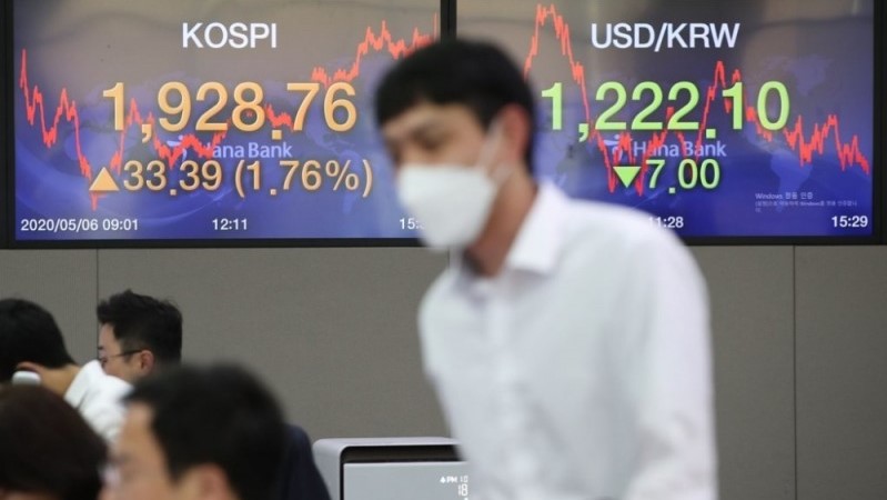 Indeks Kospi di Bursa Efek Korea, Seoul, Korea Selatan,...