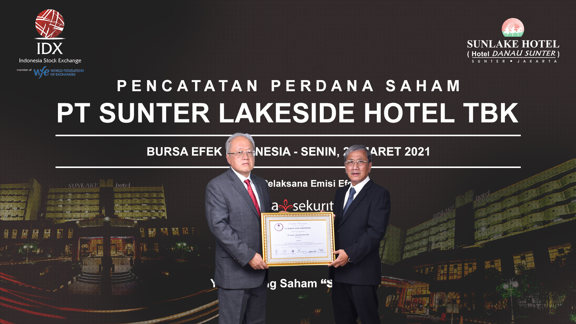 Saham PT Sunter Lakeside Hotel Tbk (IDX: SNLK) resmi...