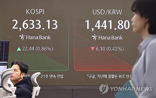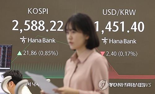 Indeks Kospi di Bursa Efek Korea, Seoul, Korea Selatan,...