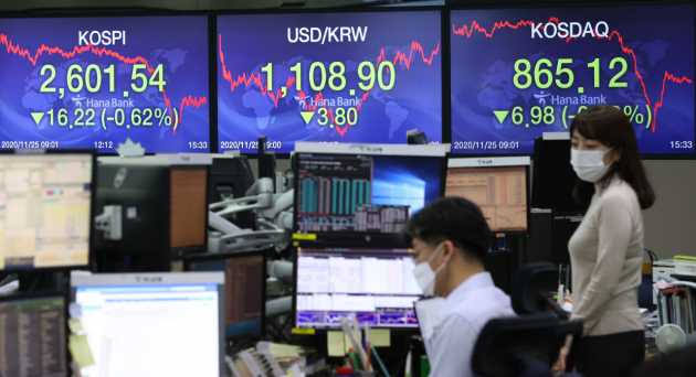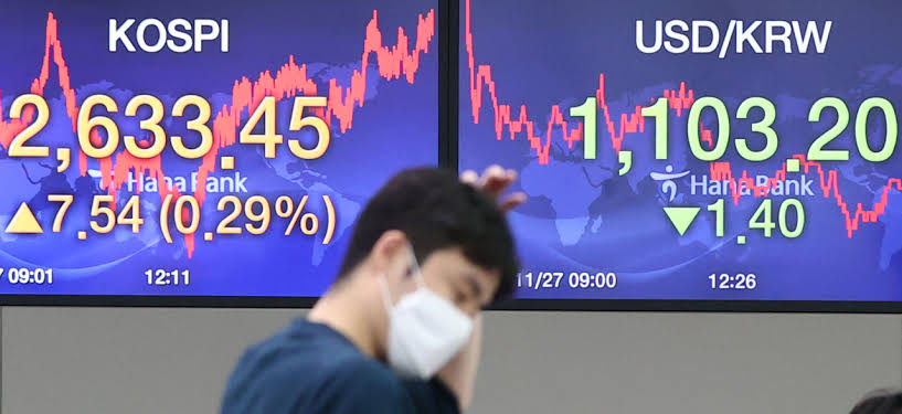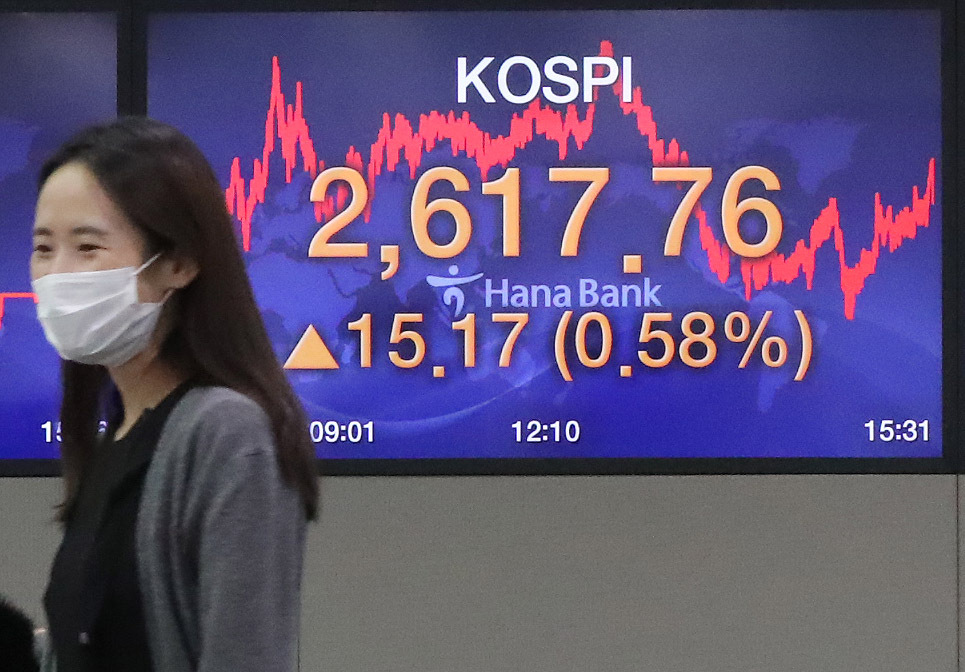 Indeks Kospi di Bursa Efek Korea, Seoul, Korea Selatan,...