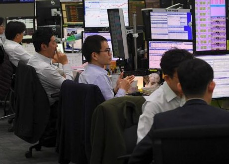 Indeks Kospi di Bursa Efek Korea, Seoul, Korea Selatan,...