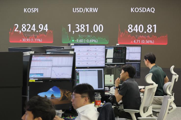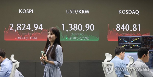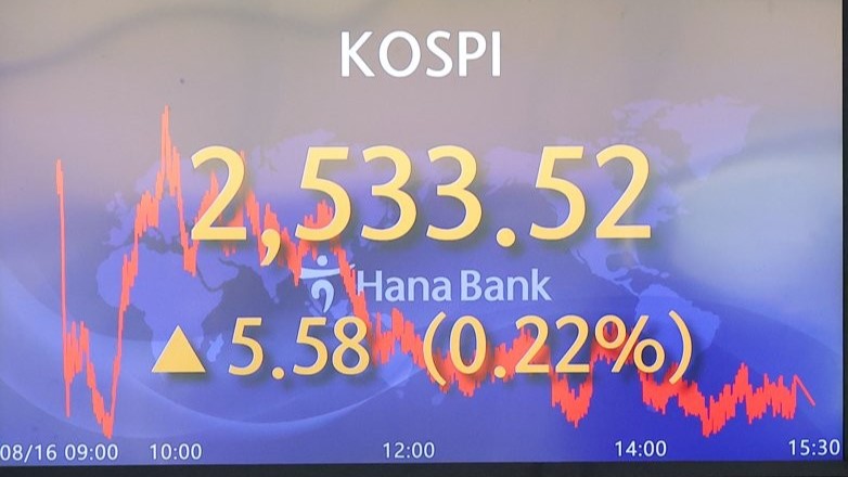 Indeks Kospi di Bursa Efek Korea, Seoul, Korea Selatan,...