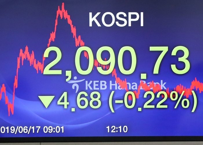 Indeks Kospi di Bursa Efek Korea, Seoul, Korea Selatan,...