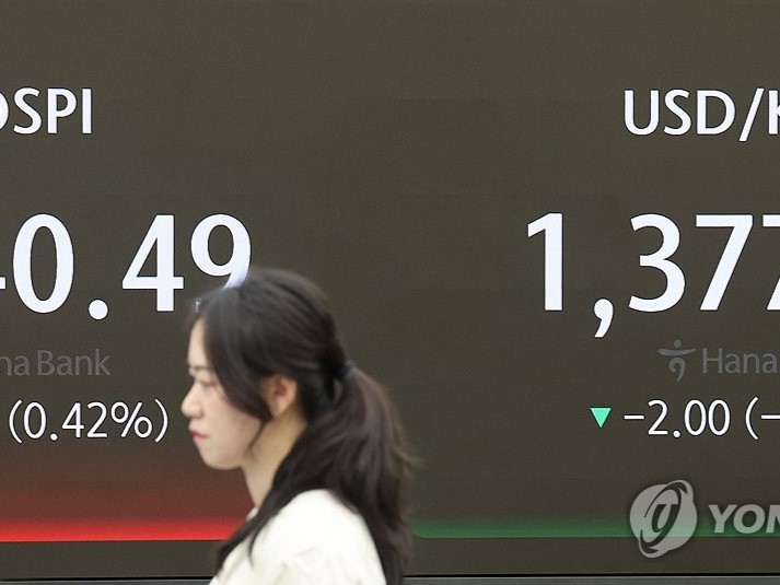 Indeks Kospi di Bursa Efek Korea, Seoul, Korea Selatan,...