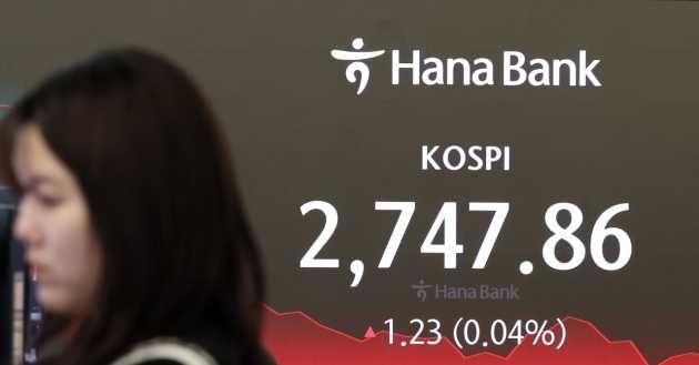 Indeks Kospi di Bursa Efek Korea, Seoul, Korea Selatan,...