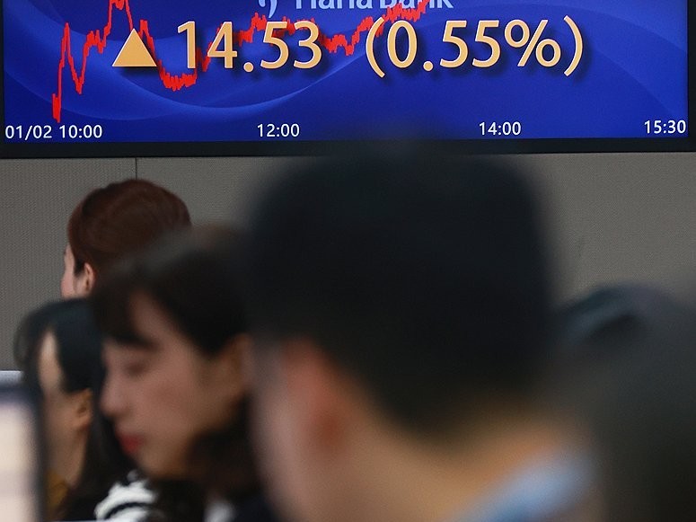 Indeks Kospi di Bursa Efek Korea, Seoul, Korea Selatan,...