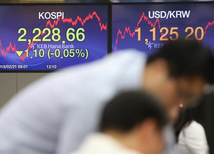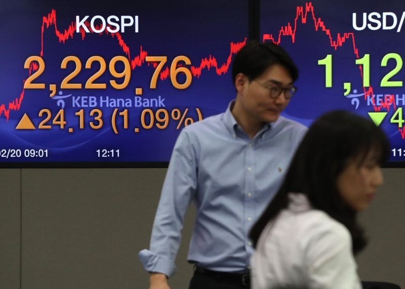 Indeks Kospi di Bursa Efek Korea, Seoul, Korea Selatan,...