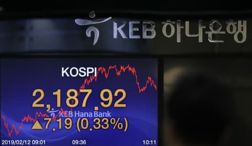 Indeks Kospi di Bursa Efek Korea, Seoul, Korea Selatan,...