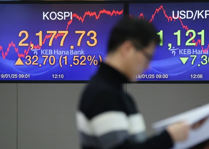 Indeks Kospi di Bursa Efek Korea, Seoul, Korea Selatan,...