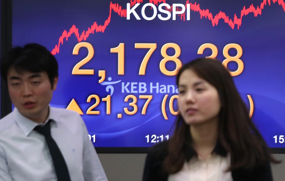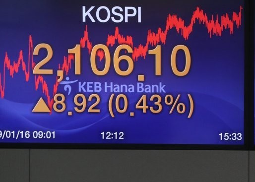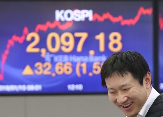 Indeks Kospi di Bursa Efek Korea, Seoul, Korea Selatan,...
