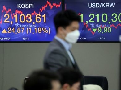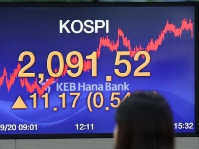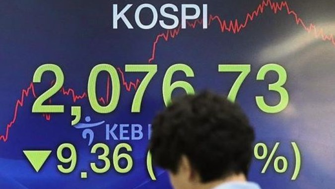 Indeks Kospi di Bursa Efek Korea, Seoul, Korea Selatan,...