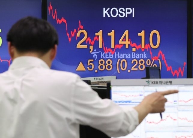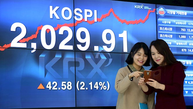 Indeks Kospi di Bursa Efek Korea, Seoul, Korea Selatan,...