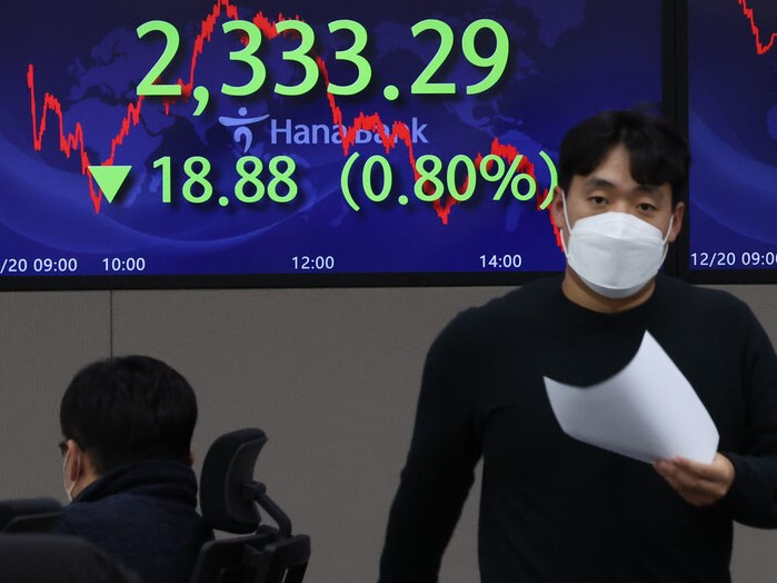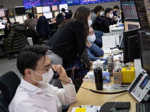 Indeks Kospi di Bursa Efek Korea, Seoul, Korea Selatan,...