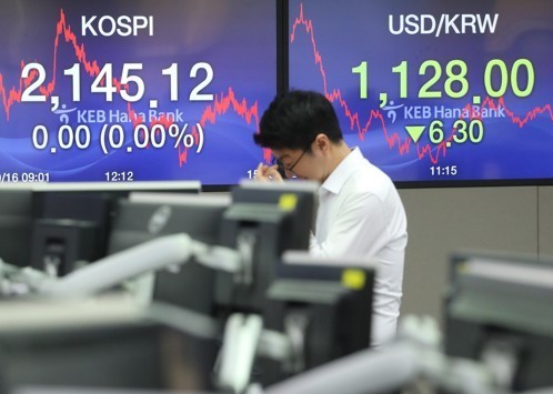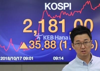 Indeks Kospi di Bursa Efek Korea, Seoul, Korea Selatan,...