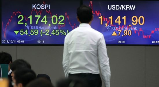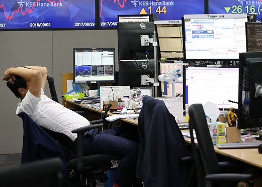 Indeks Kospi di Bursa Efek Korea, Seoul, Korea Selatan,...