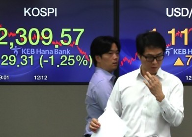 Indeks Kospi di Bursa Efek Korea, Seoul, Korea Selatan,...