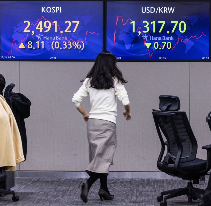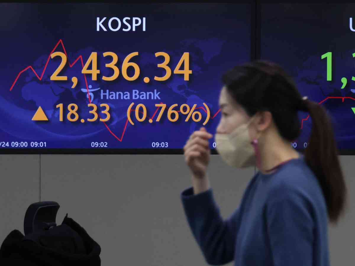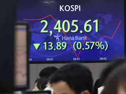 Indeks Kospi di Bursa Efek Korea, Seoul, Korea Selatan,...