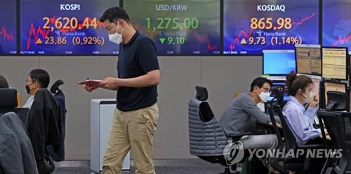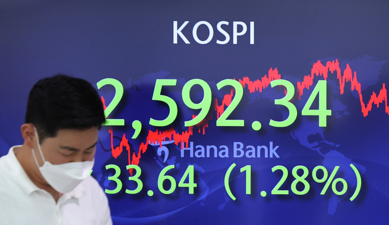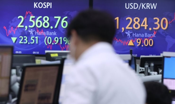 Indeks Kospi di Bursa Efek Korea, Seoul, Korea Selatan,...