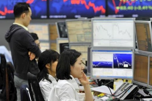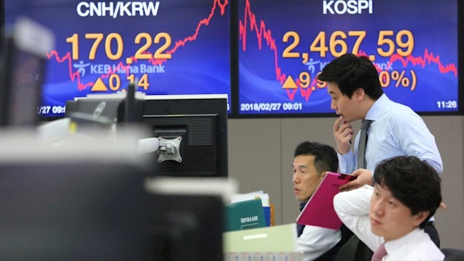 Indeks Kospi di Bursa Efek Korea, Seoul, Korea Selatan,...