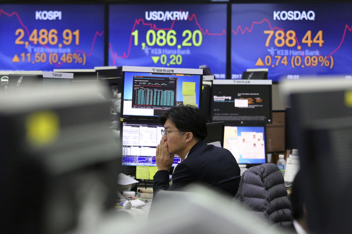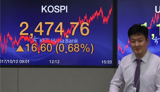 Indeks Kospi di Bursa Efek Korea, Seoul, Korea Selatan,...