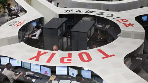 Indeks Nikkei 225 di Bursa Efek Tokyo, Jepang, terjun...