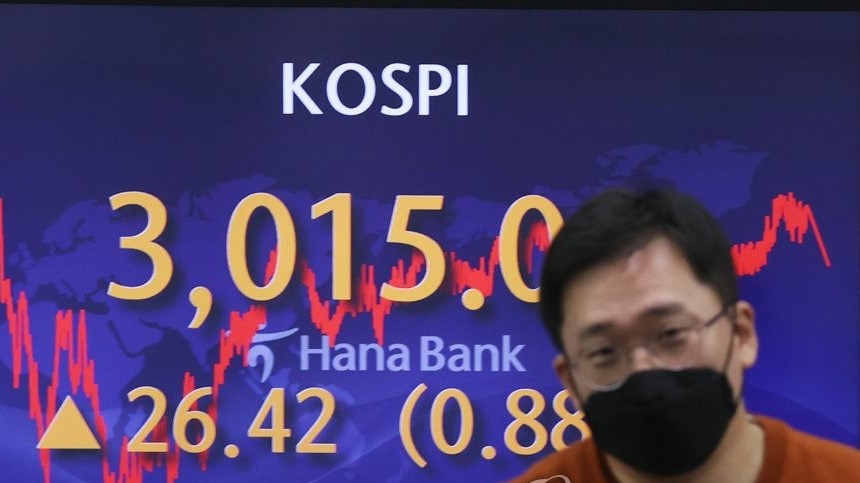 Indeks Kospi di Bursa Efek Korea, Seoul, Korea Selatan,...