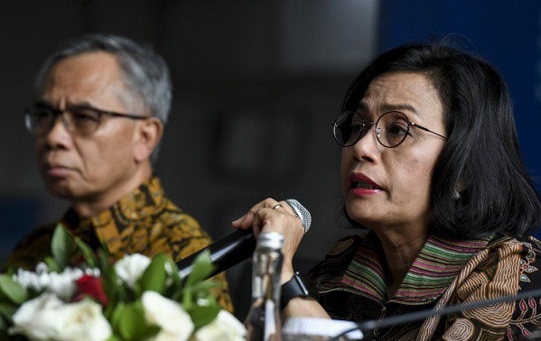 Menteri Keuangan Sri Mulyani Indrawati melakukan video...