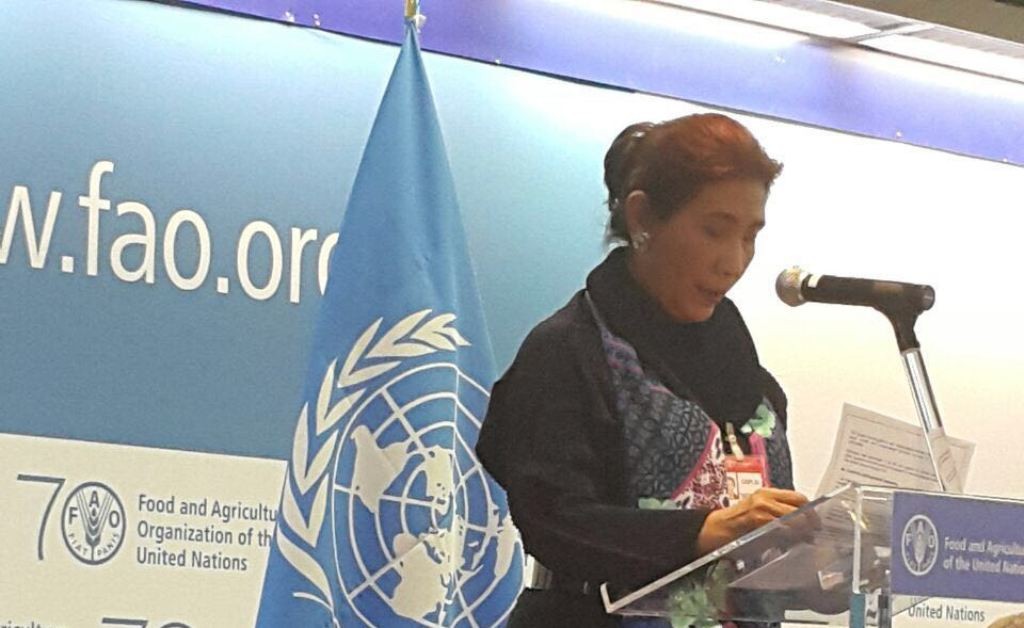 Menteri Kelautan dan Perikanan Susi Pudjiastuti memaparkan...